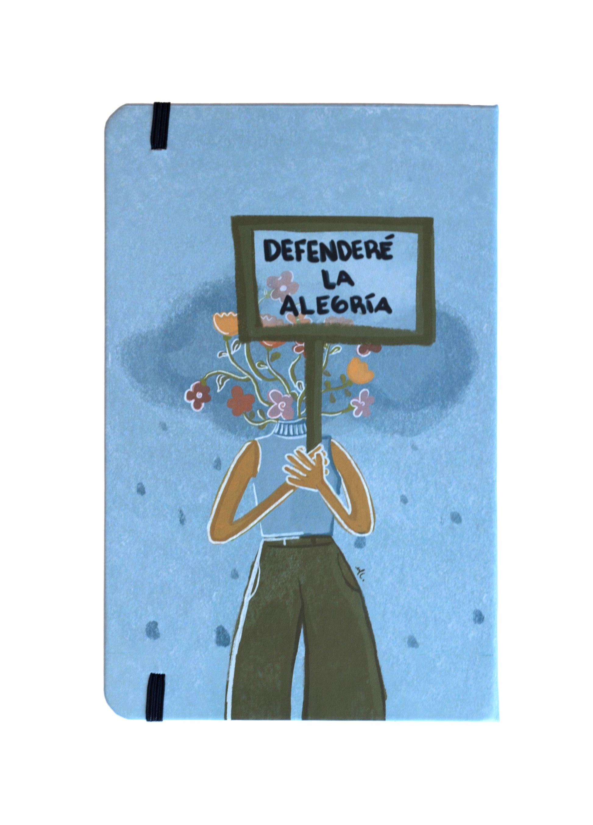 Estaba en busca de libretas que me inspiraran a escribir mis emociones y al ver "defenderé la alegría" no dude en hacer la compra, además de bonita su material es de calidad